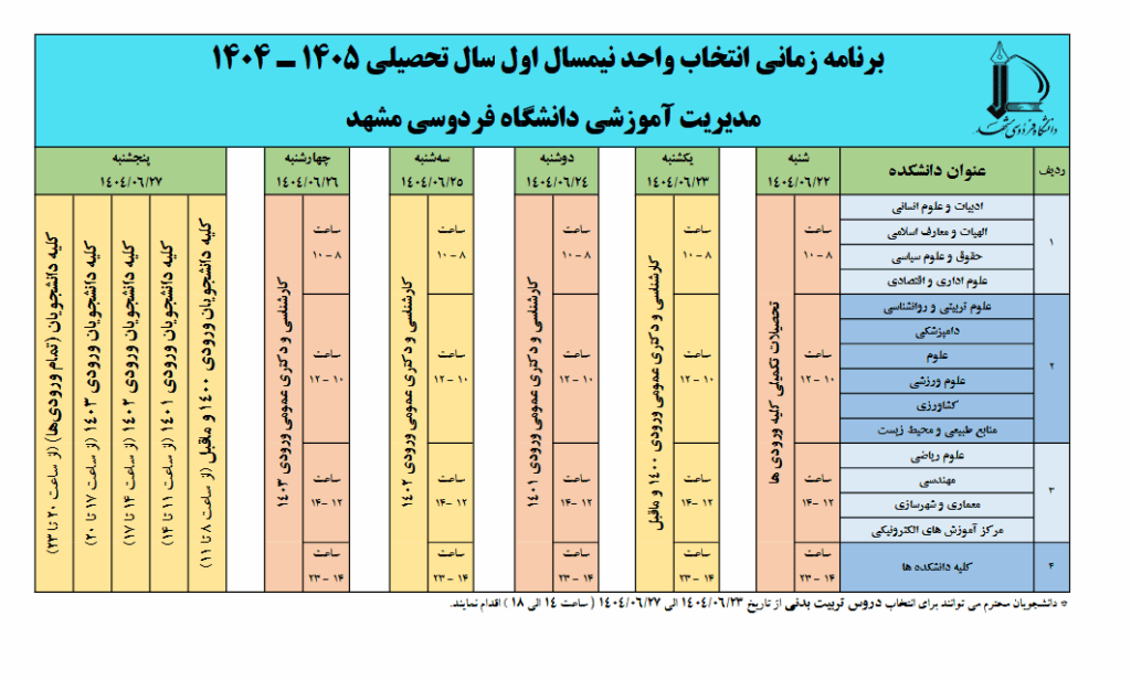 دانشجویان گرامی برای مشاهده تقویم آموزشی نیمسال دوم 1403 و برنامه زمانبندی انتخاب واحد لینک های زیر را مشاهده کنید.